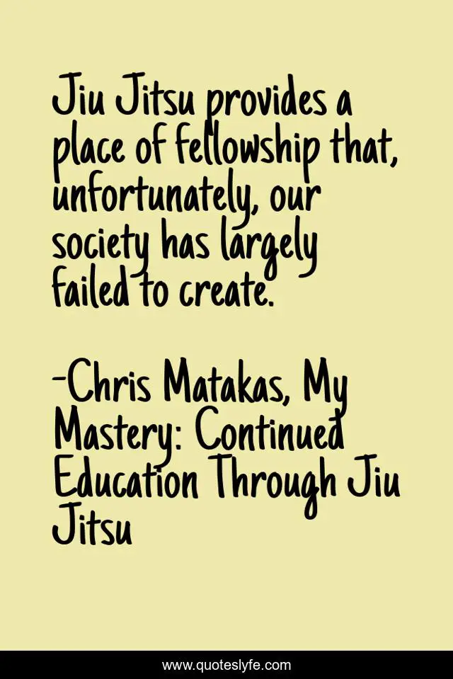 "Chris Matakas, My Mastery: Continued Education Through Jiu Jitsu Quotes." Quoteslyfe.com, 2025. Sat. 06 Dec. 2025. <https://www.quoteslyfe.com/quote/Jiu-Jitsu-provides-a-place-of-fellowship-86456>.