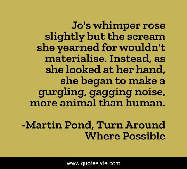 "Martin Pond, Turn Around Where Possible Quotes." Quoteslyfe.com, 2025. Sat. 06 Dec. 2025. <https://www.quoteslyfe.com/quote/Jo-s-whimper-rose-slightly-but-the-156486>.