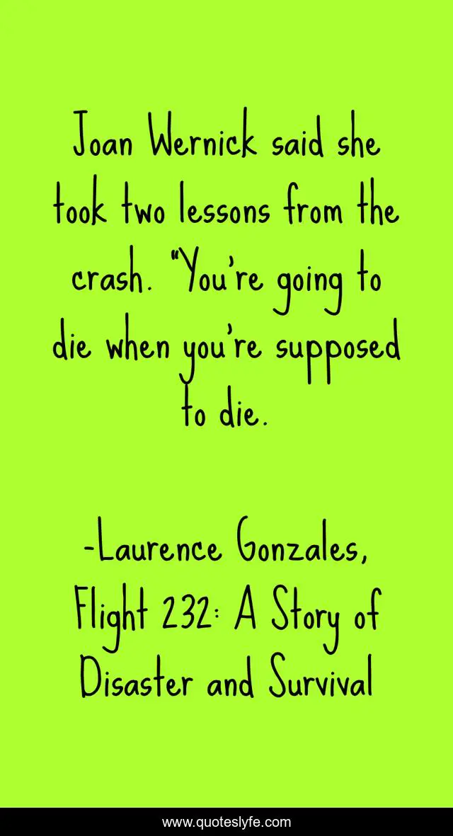 "Laurence Gonzales, Flight 232: A Story of Disaster and Survival Quotes." Quoteslyfe.com, 2025. Sat. 06 Dec. 2025. <https://www.quoteslyfe.com/quote/Joan-Wernick-said-she-took-two-lessons-21919>.