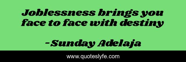 This page presents the quote "Joblessness brings you face to face with destiny". Author of this quote is Sunday Adelaja. This quote is about love, people, money, principles, employment, worship, jobless, service, god,.