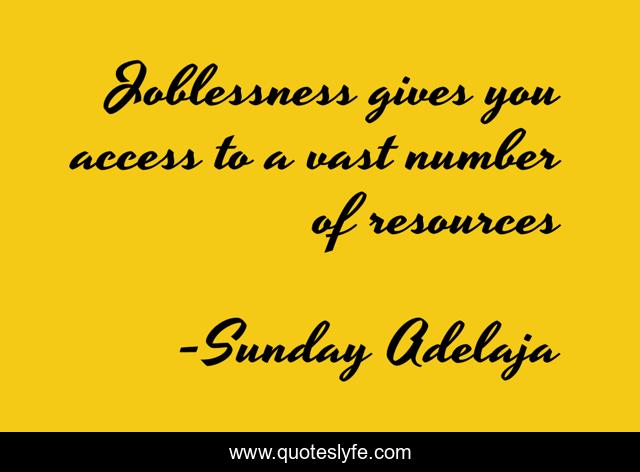 This page presents the quote "Joblessness gives you access to a vast number of resources". Author of this quote is Sunday Adelaja. This quote is about life, blessing, finance, money, work, time-well-spent, job, joblessness, purpose,.