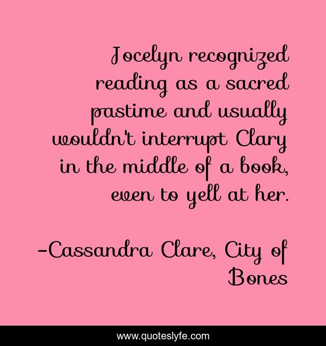 "Cassandra Clare, City of Bones Quotes." Quoteslyfe.com, 2025. Mon. 08 Dec. 2025. <https://www.quoteslyfe.com/quote/Jocelyn-recognized-reading-as-a-sacred-pastime-189612>.