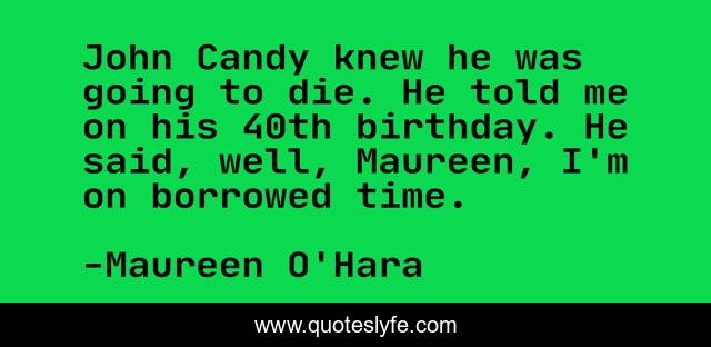 This page presents the quote "John Candy knew he was going to die. He told me on his 40th birthday. He said, well, Maureen, I'm on borrowed time.". Author of this quote is Maureen O'Hara. This quote is about me, birthday, time,.
