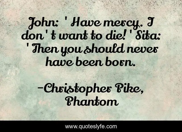 This page presents the quote "John: 'Have mercy. I don't want to die!'Sita: 'Then you should never have been born.". Author of this quote is Christopher Pike, Phantom. This quote is about sita, death,.