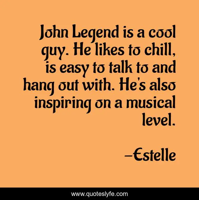 This page presents the quote "John Legend is a cool guy. He likes to chill, is easy to talk to and hang out with. He's also inspiring on a musical level.". Author of this quote is Estelle. This quote is about legend, easy, chill,.