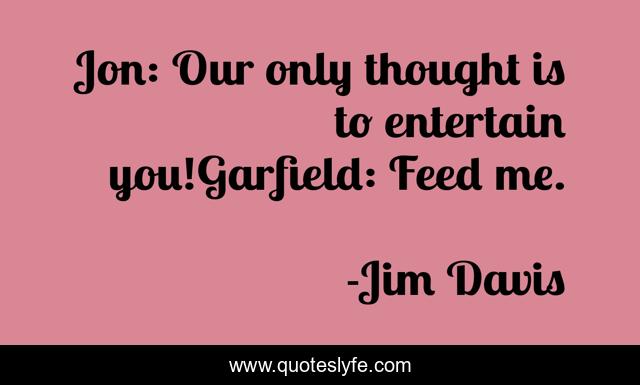 This page presents the quote "Jon: Our only thought is to entertain you!Garfield: Feed me.". Author of this quote is Jim Davis. This quote is about funny, garfield, comedy,.