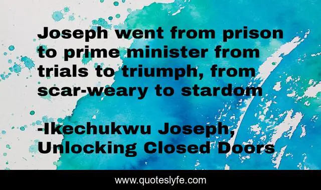 "Ikechukwu Joseph, Unlocking Closed Doors Quotes." Quoteslyfe.com, 2025. Mon. 08 Dec. 2025. <https://www.quoteslyfe.com/quote/Joseph-went-from-prison-to-prime-minister-84834>.