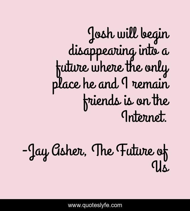 This page presents the quote "Josh will begin disappearing into a future where the only place he and I remain friends is on the Internet.". Author of this quote is Jay Asher, The Future of Us. This quote is about facebook, future, friends,.