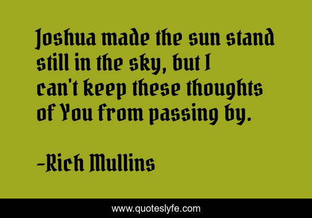 This page presents the quote "Joshua made the sun stand still in the sky, but I can't keep these thoughts of You from passing by.". Author of this quote is Rich Mullins. This quote is about faith, worship, prayer,.