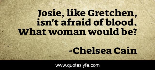 This page presents the quote "Josie, like Gretchen, isn't afraid of blood. What woman would be?". Author of this quote is Chelsea Cain. This quote is about horror, suspense, blood, thriller, women,.