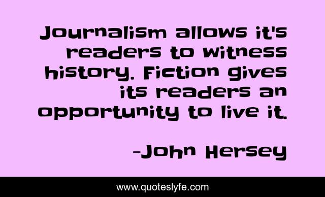 This page presents the quote "Journalism allows it's readers to witness history. Fiction gives its readers an opportunity to live it.". Author of this quote is John Hersey. This quote is about writers, writing,.
