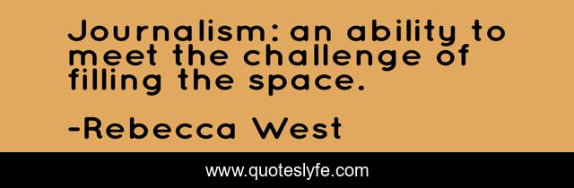 This page presents the quote "Journalism: an ability to meet the challenge of filling the space.". Author of this quote is Rebecca West. This quote is about challenge, journalism,.