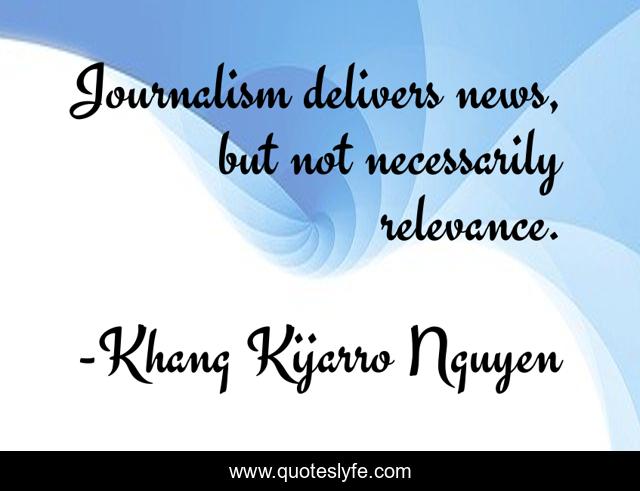 "Khang Kijarro Nguyen Quotes." Quoteslyfe.com, 2025. Fri. 05 Dec. 2025. <https://www.quoteslyfe.com/quote/Journalism-delivers-news-but-not-necessarily-relevance-256651>.