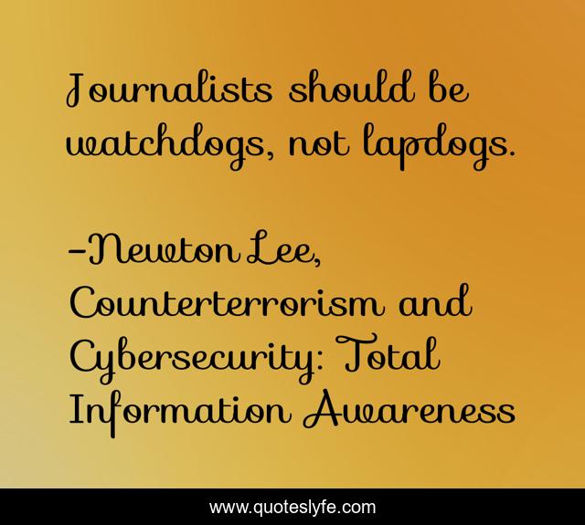 "Newton Lee, Counterterrorism and Cybersecurity: Total Information Awareness Quotes." Quoteslyfe.com, 2025. Fri. 05 Dec. 2025. <https://www.quoteslyfe.com/quote/Journalists-should-be-watchdogs-not-lapdogs-256706>.