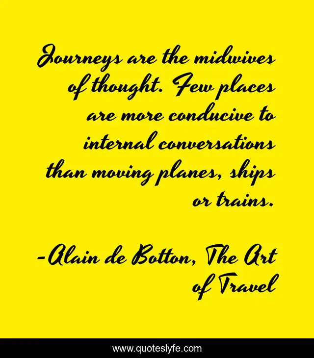 "Alain de Botton, The Art of Travel Quotes." Quoteslyfe.com, 2025. Sun. 07 Dec. 2025. <https://www.quoteslyfe.com/quote/Journeys-are-the-midwives-of-thought-Few-137636>.
