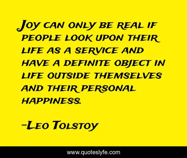 This page presents the quote "Joy can only be real if people look upon their life as a service and have a definite object in life outside themselves and their personal happiness.". Author of this quote is Leo Tolstoy. This quote is about joy, life, service,.