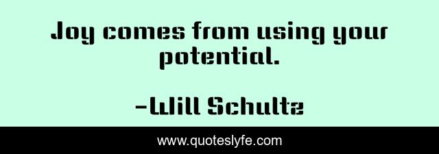 This page presents the quote "Joy comes from using your potential.". Author of this quote is Will Schultz. This quote is about joy, potential,.