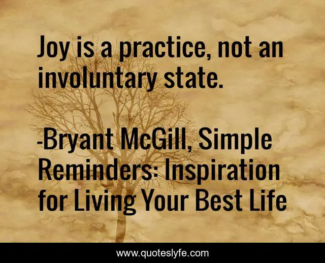 "Bryant McGill, Simple Reminders: Inspiration for Living Your Best Life Quotes." Quoteslyfe.com, 2025. Fri. 05 Dec. 2025. <https://www.quoteslyfe.com/quote/Joy-is-a-practice-not-an-involuntary-97655>.