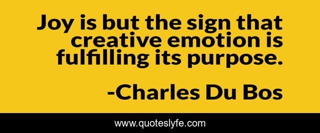 This page presents the quote "Joy is but the sign that creative emotion is fulfilling its purpose.". Author of this quote is Charles Du Bos. This quote is about joy, unique, emotions, hope, creative,.