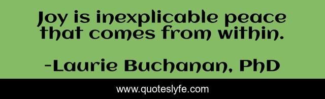 "Laurie Buchanan, PhD Quotes." Quoteslyfe.com, 2025. Fri. 05 Dec. 2025. <https://www.quoteslyfe.com/quote/Joy-is-inexplicable-peace-that-comes-from-97037>.