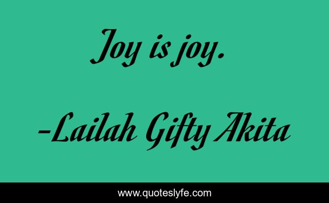 This page presents the quote "Joy is joy.". Author of this quote is Lailah Gifty Akita. This quote is about living, life, joy, motivational, confidence, optimistic, positive,.