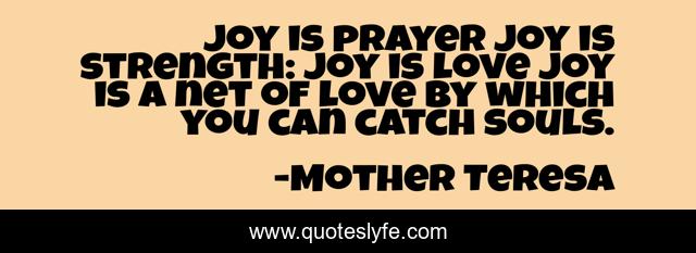 "Mother Teresa Quotes." Quoteslyfe.com, 2025. Sat. 06 Dec. 2025. <https://www.quoteslyfe.com/quote/Joy-is-prayer-joy-is-strength-joy-286847>.