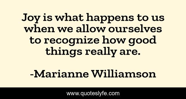 This page presents the quote "Joy is what happens to us when we allow ourselves to recognize how good things really are.". Author of this quote is Marianne Williamson. .