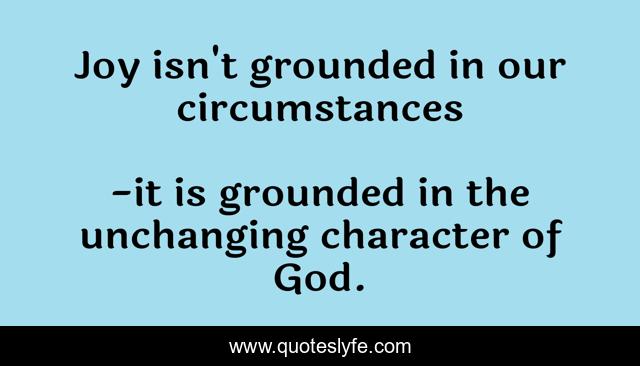 "it is grounded in the unchanging character of God. Quotes." Quoteslyfe.com, 2025. Sun. 07 Dec. 2025. <https://www.quoteslyfe.com/quote/Joy-isn-t-grounded-in-our-circumstances-201686>.