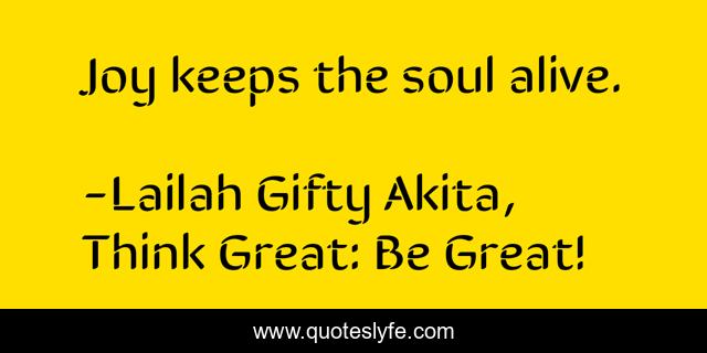 "Lailah Gifty Akita, Think Great: Be Great! Quotes." Quoteslyfe.com, 2025. Fri. 05 Dec. 2025. <https://www.quoteslyfe.com/quote/Joy-keeps-the-soul-alive-85173>.