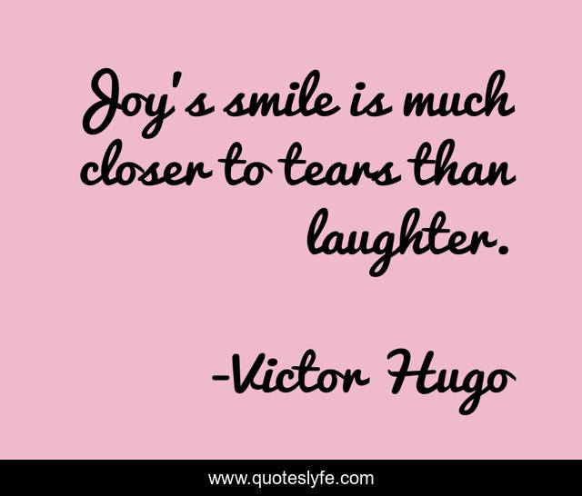 This page presents the quote "Joy's smile is much closer to tears than laughter.". Author of this quote is Victor Hugo. This quote is about joy, tears, laughter,.