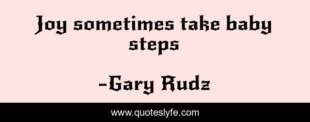 This page presents the quote "Joy sometimes take baby steps". Author of this quote is Gary Rudz. .