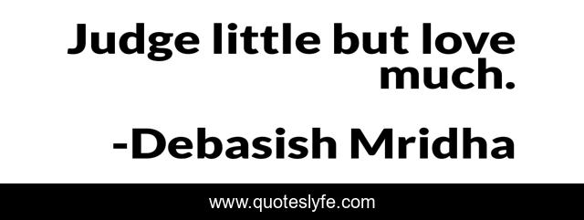 This page presents the quote "Judge little but love much.". Author of this quote is Debasish Mridha. This quote is about life, love, knowledge, inspirational, intelligence, philosophy, wisdom, quotes, affection,.