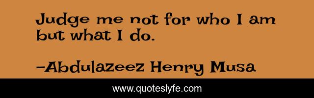 This page presents the quote "Judge me not for who I am but what I do.". Author of this quote is Abdulazeez Henry Musa. .