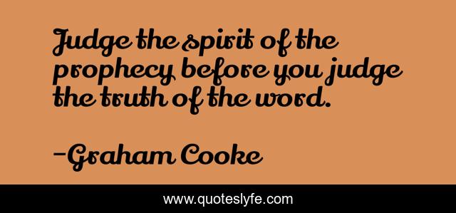 This page presents the quote "Judge the spirit of the prophecy before you judge the truth of the word.". Author of this quote is Graham Cooke. This quote is about god, prophecy, bible, prophet,.