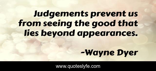 This page presents the quote "Judgements prevent us from seeing the good that lies beyond appearances.". Author of this quote is Wayne Dyer. This quote is about seeing, appearances, beyond,.