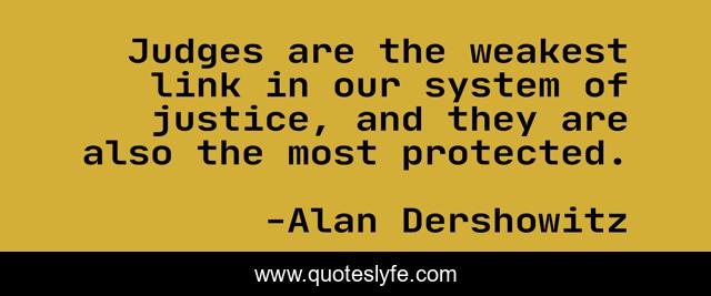 This page presents the quote "Judges are the weakest link in our system of justice, and they are also the most protected.". Author of this quote is Alan Dershowitz. This quote is about justice, protected, system,.