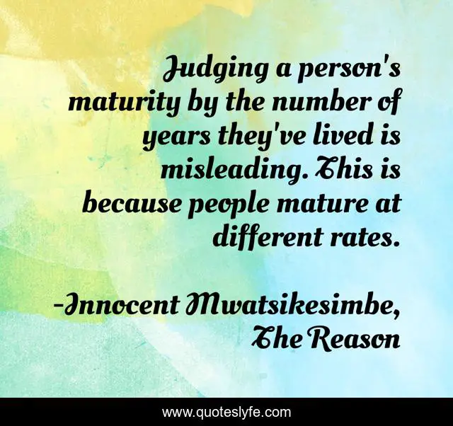 This page presents the quote "Judging a person's maturity by the number of years they've lived is misleading. This is because people mature at different rates.". Author of this quote is Innocent Mwatsikesimbe, The Reason. This quote is about maturity, growth, self-improvement, self-help,.