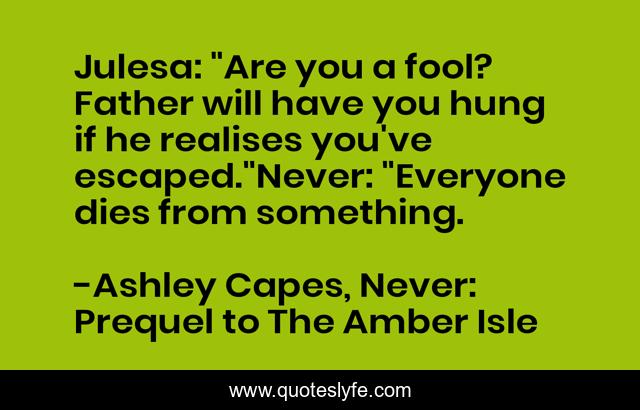 "Ashley Capes, Never: Prequel to The Amber Isle Quotes." Quoteslyfe.com, 2025. Fri. 05 Dec. 2025. <https://www.quoteslyfe.com/quote/Julesa-Are-you-a-fool-Father-will-56301>.
