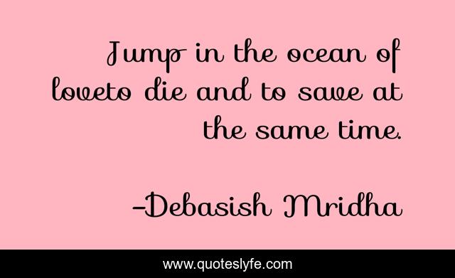 This page presents the quote "Jump in the ocean of loveto die and to save at the same time.". Author of this quote is Debasish Mridha. This quote is about life, love, knowledge, inspirational, intelligence, philosophy, wisdom, quotes, affection,.