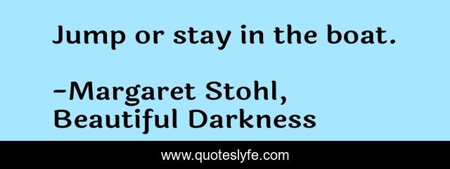 "Margaret Stohl, Beautiful Darkness Quotes." Quoteslyfe.com, 2025. Mon. 08 Dec. 2025. <https://www.quoteslyfe.com/quote/Jump-or-stay-in-the-boat-219020>.