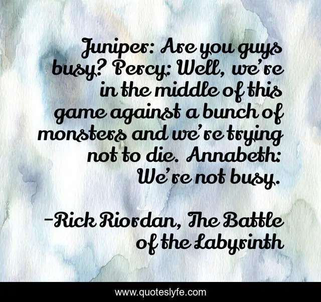 "Rick Riordan, The Battle of the Labyrinth Quotes." Quoteslyfe.com, 2025. Sun. 07 Dec. 2025. <https://www.quoteslyfe.com/quote/Juniper-Are-you-guys-busy-Percy-Well-244704>.