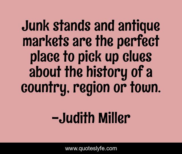 This page presents the quote "Junk stands and antique markets are the perfect place to pick up clues about the history of a country, region or town.". Author of this quote is Judith Miller. This quote is about perfect, country, place,.