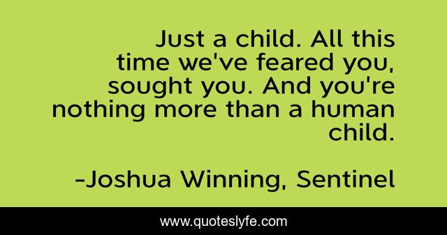 This page presents the quote "Just a child. All this time we've feared you, sought you. And you're nothing more than a human child.". Author of this quote is Joshua Winning, Sentinel. This quote is about sentinel, malika, fear, child,.