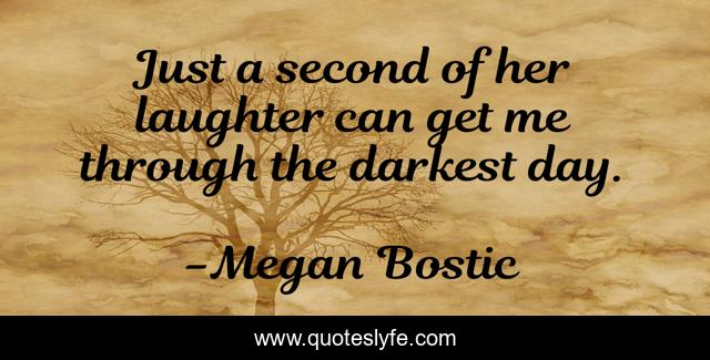This page presents the quote "Just a second of her laughter can get me through the darkest day.". Author of this quote is Megan Bostic. .