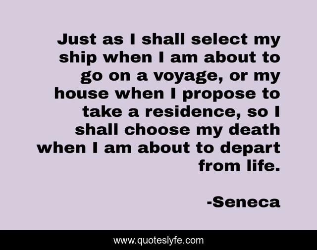 This page presents the quote "Just as I shall select my ship when I am about to go on a voyage, or my house when I propose to take a residence, so I shall choose my death when I am about to depart from life.". Author of this quote is Seneca. This quote is about life, ship,.