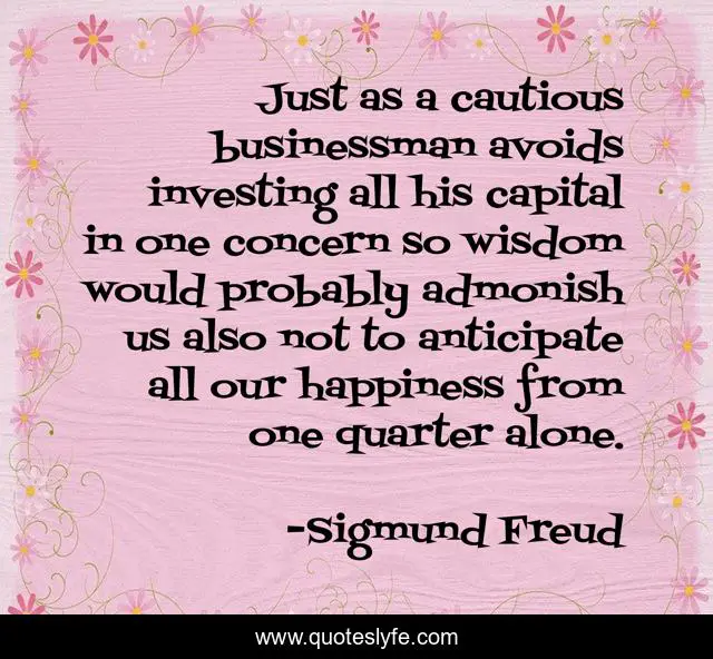 This page presents the quote "Just as a cautious businessman avoids investing all his capital in one concern so wisdom would probably admonish us also not to anticipate all our happiness from one quarter alone.". Author of this quote is Sigmund Freud. .