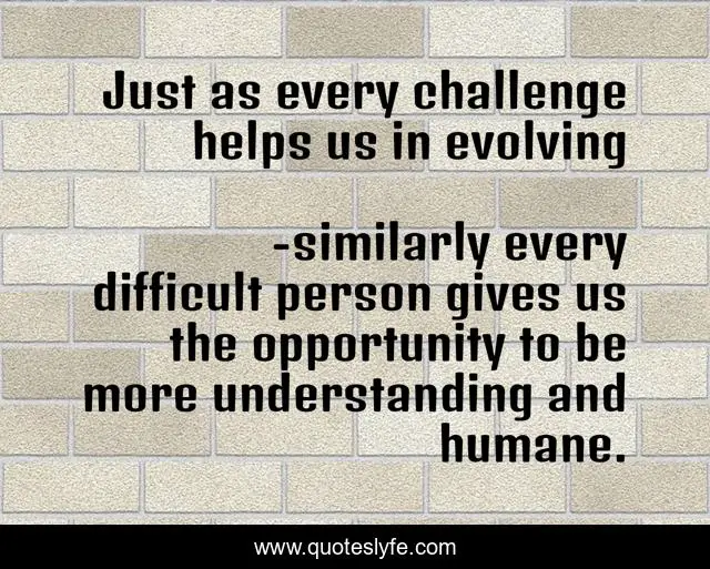 "similarly every difficult person gives us the opportunity to be more understanding and humane. Quotes." Quoteslyfe.com, 2025. Fri. 05 Dec. 2025. <https://www.quoteslyfe.com/quote/Just-as-every-challenge-helps-us-in-124981>.