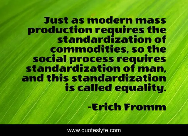 This page presents the quote "Just as modern mass production requires the standardization of commodities, so the social process requires standardization of man, and this standardization is called equality.". Author of this quote is Erich Fromm. .