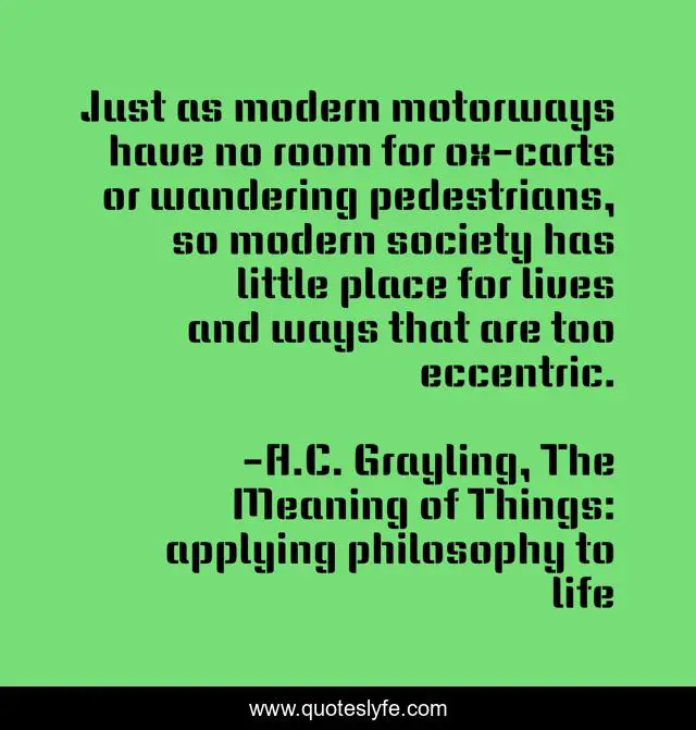 "A.C. Grayling, The Meaning of Things: applying philosophy to life Quotes." Quoteslyfe.com, 2025. Mon. 08 Dec. 2025. <https://www.quoteslyfe.com/quote/Just-as-modern-motorways-have-no-room-102313>.