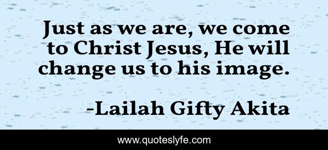 This page presents the quote "Just as we are, we come to Christ Jesus, He will change us to his image.". Author of this quote is Lailah Gifty Akita. This quote is about jesus-christ, faith, christian, repent, born-again, change, sinner,.